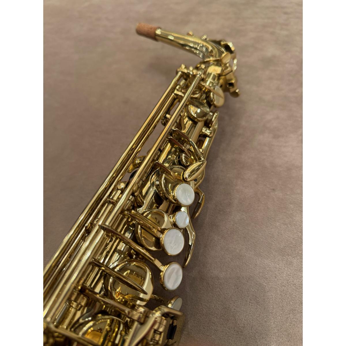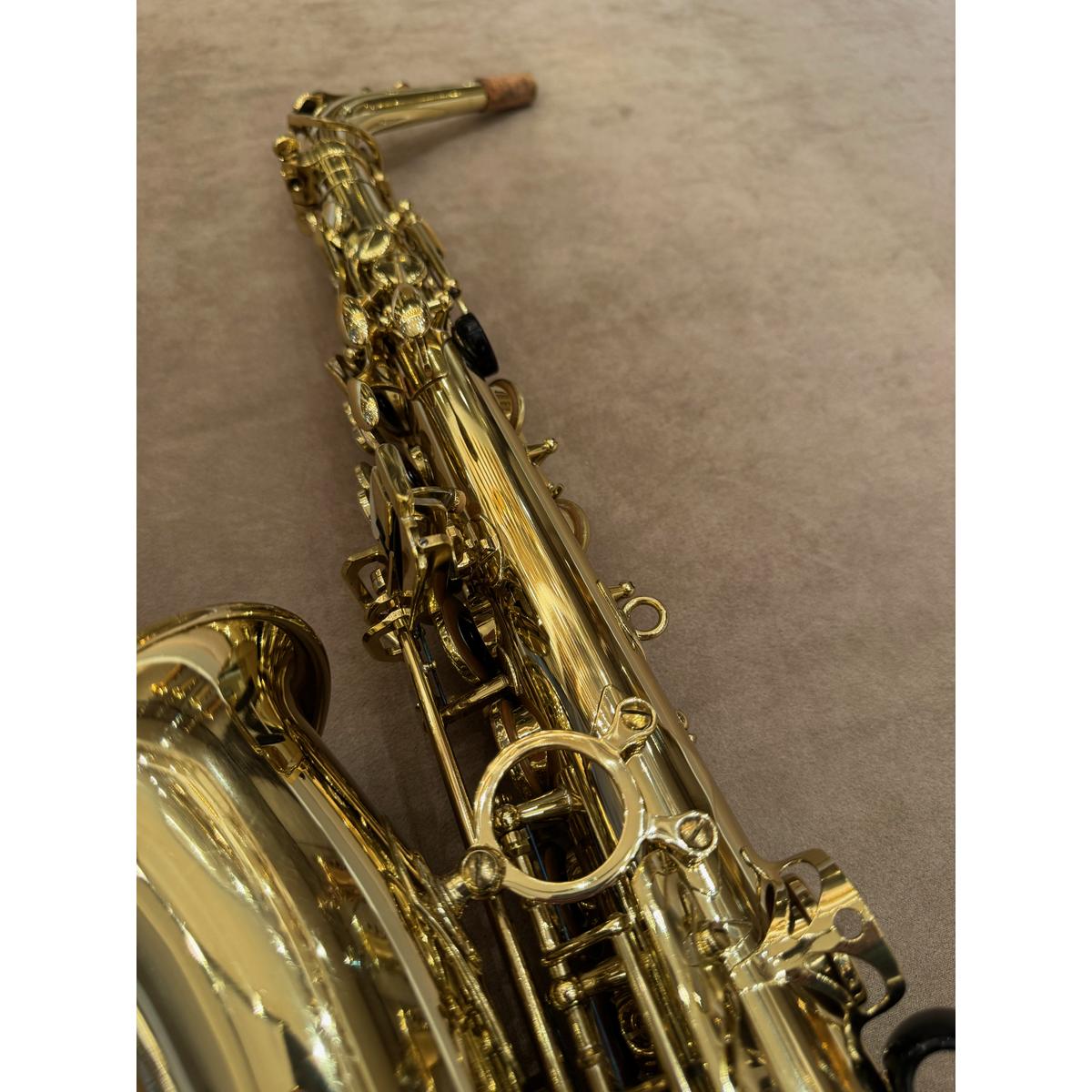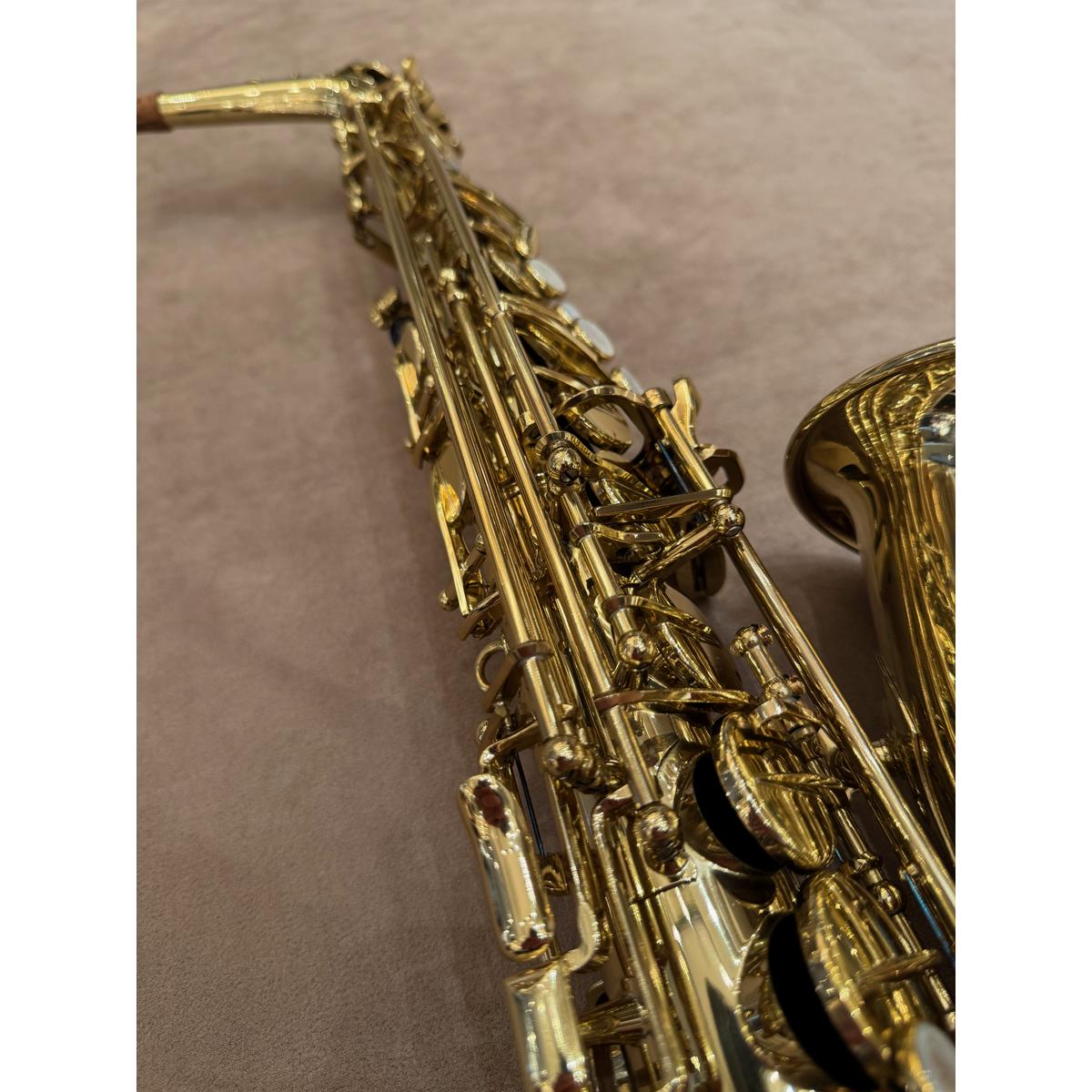 De Selmer SA80II goud gelakte altsaxofoon. Een allround professioneel instrument van de hoogste kwaliteit. De sax is met de hand vervaardigd door Selmer in Mantes Les Villes, Frankrijk. Inzetbaar in alle muziekgenres, van klassiek tot pop. Het instrument produceert een gecentreerd groot geluid met veel projectie. Het instrument heeft een zeer fraaie hand gestoken gravure. De Selmer saxofoons hebben een zeer lange (bewezen) levensduur. Dit is de gouden gematteerde, gelakte afwerking.
