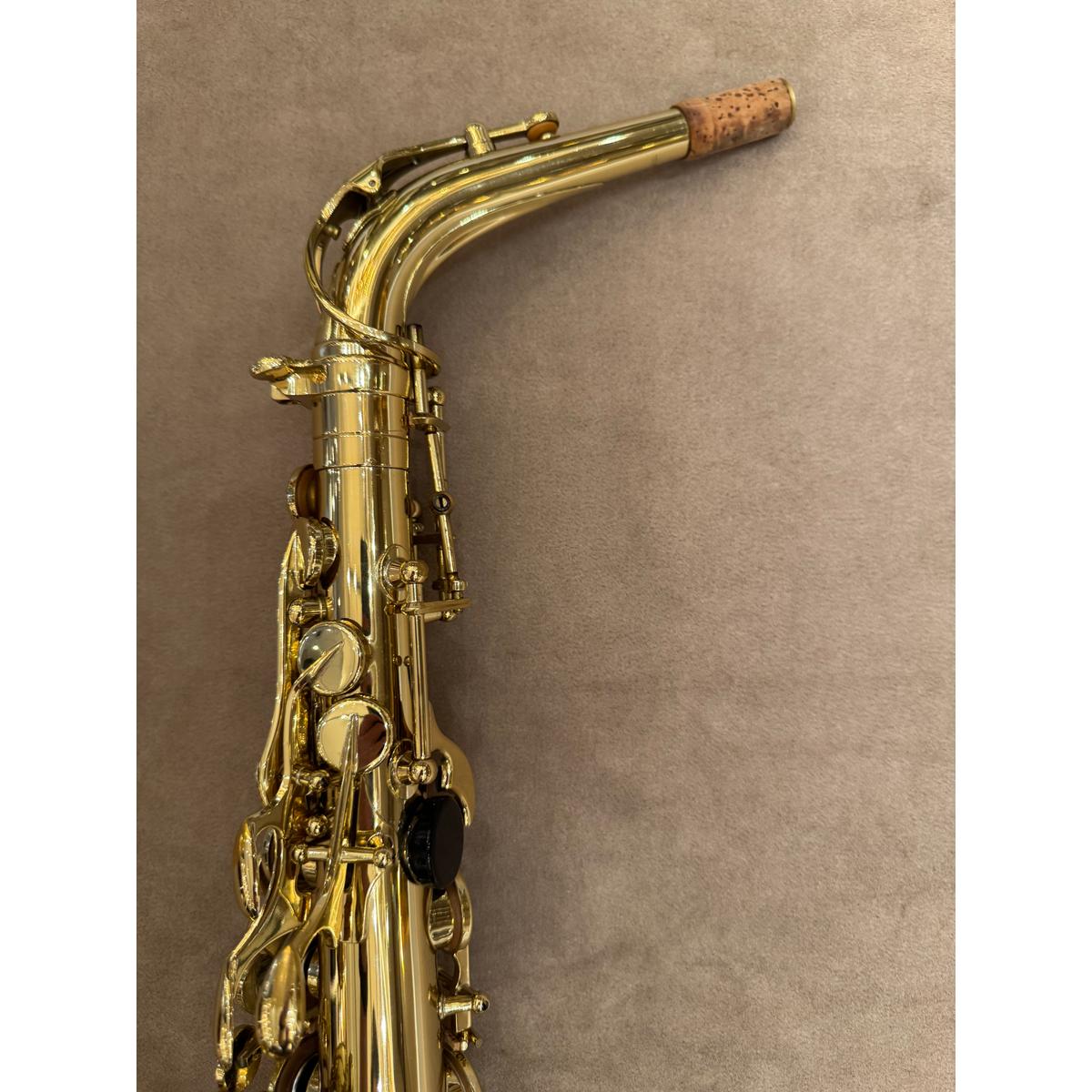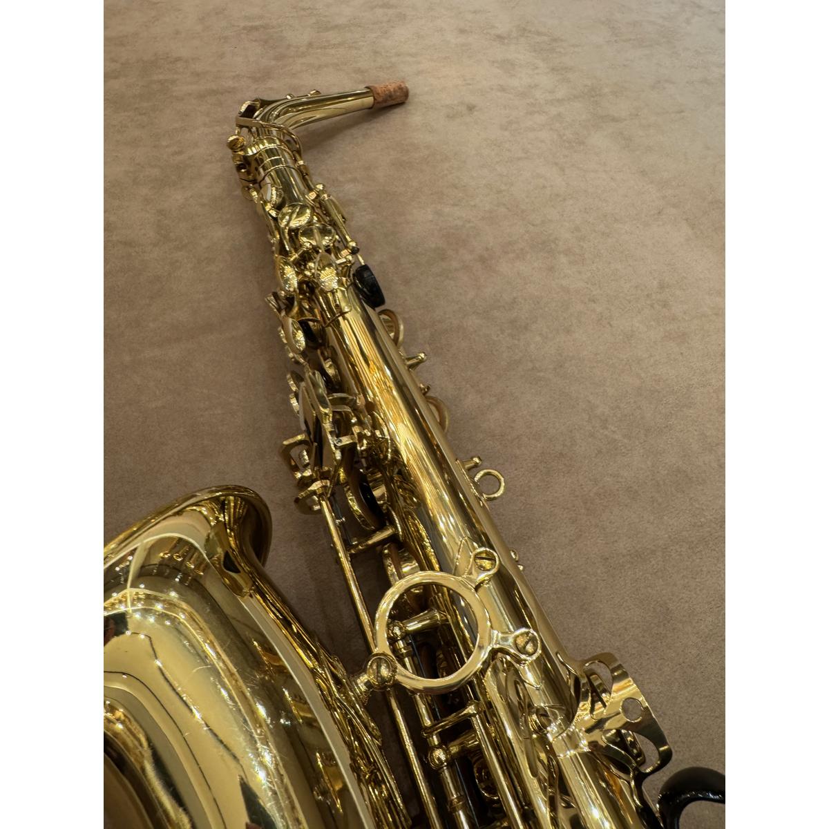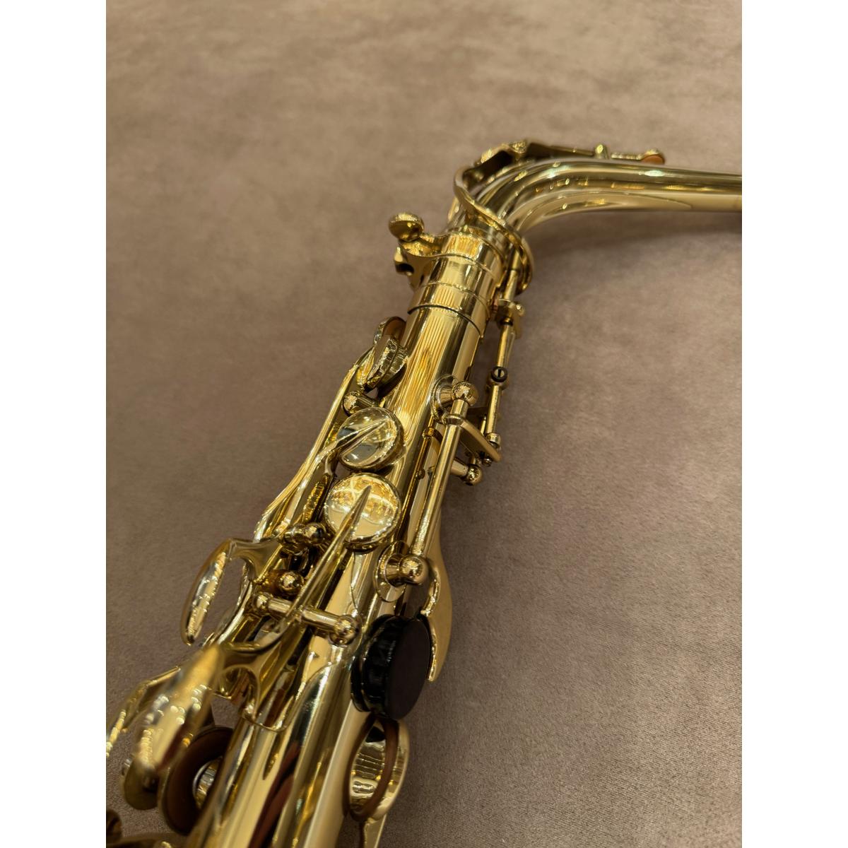 De Selmer SA80II goud gelakte altsaxofoon. Een allround professioneel instrument van de hoogste kwaliteit. De sax is met de hand vervaardigd door Selmer in Mantes Les Villes, Frankrijk. Inzetbaar in alle muziekgenres, van klassiek tot pop. Het instrument produceert een gecentreerd groot geluid met veel projectie. Het instrument heeft een zeer fraaie hand gestoken gravure. De Selmer saxofoons hebben een zeer lange (bewezen) levensduur. Dit is de gouden gematteerde, gelakte afwerking.
